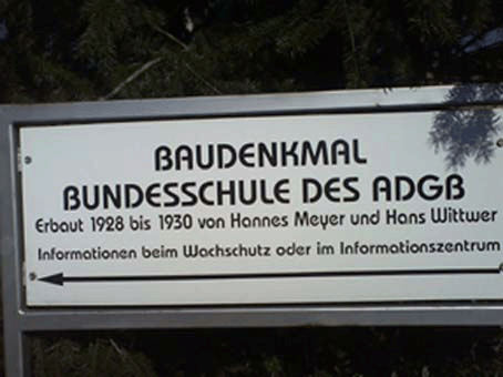 Die Anlage der Bundesschule wurde unter Leitung von Hannes Meyer in der Bau-Abteilung des Bauhauses geplant und von 1928-1930, also zeitgleich mit den Laubenganghäusern, realisiert. In dieser Schule, im Bernauer Forst gelegen, sollten Funktionäre, die sich vor allem mit Fragen der Sozialpolitik, Arbeitsrecht, Betriebshygiene und den Aufgaben eines Versammlungsleiters beschäftigen, in 4-wöchigen Kursen ausgebildet werden. Neben den Räumen für den Unterricht mussten auch (Außen-) Räume für Wohnen, Erholung, Sport und Spiel geschaffen werden.