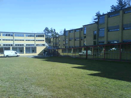 Der Hof öffnet sich zum Forst hin und der Übergang zur vorhandenen Vegetation und dem Gelände ist auokkernd gestaltet. „Mit einer kühlen, dabei feinen Exaktheit macht sich der Bau in der märkischen Landschaft.“ (ZENTRALBLATT 1931b, 222).